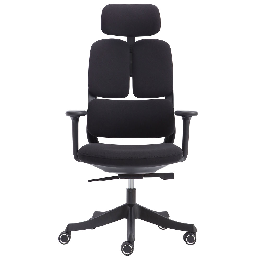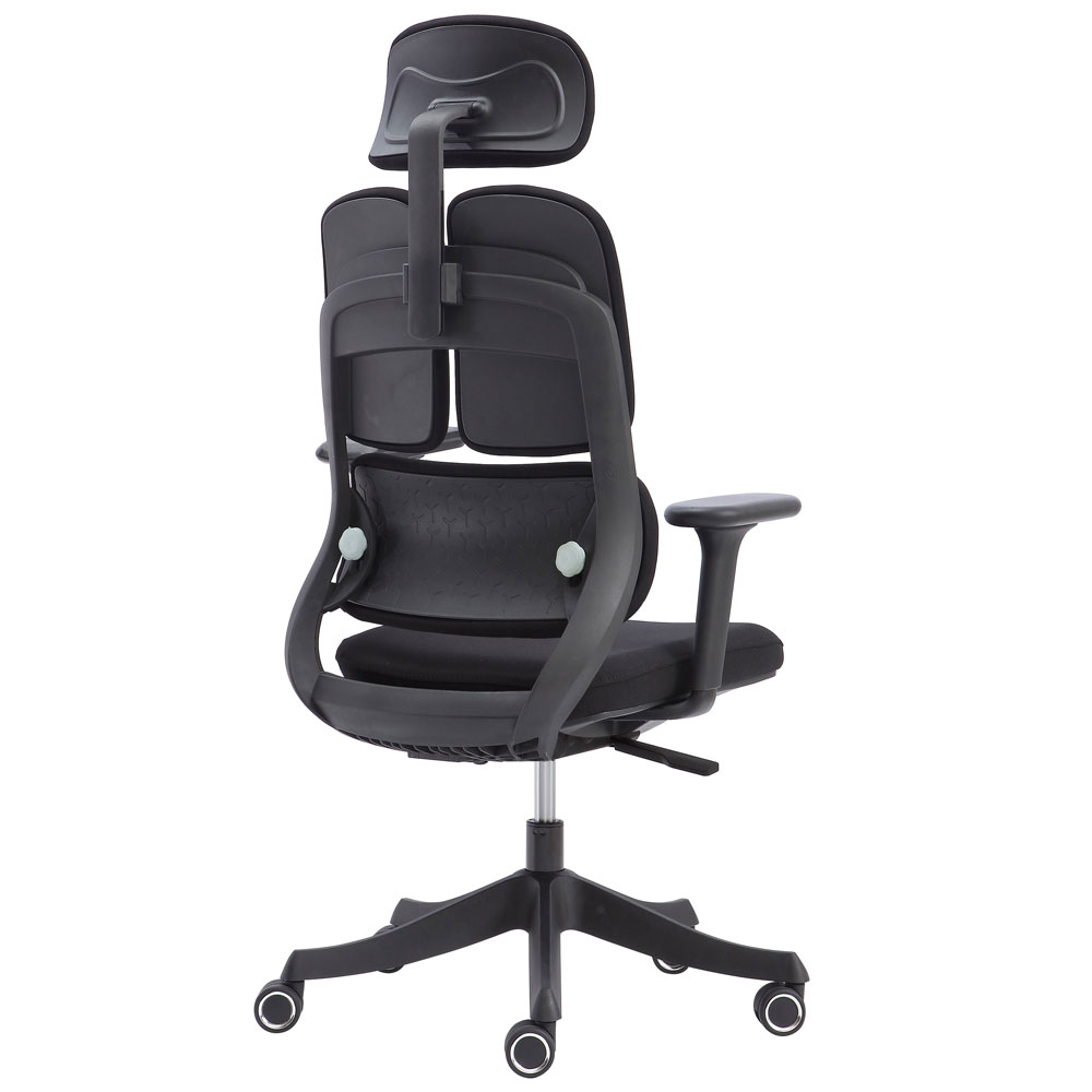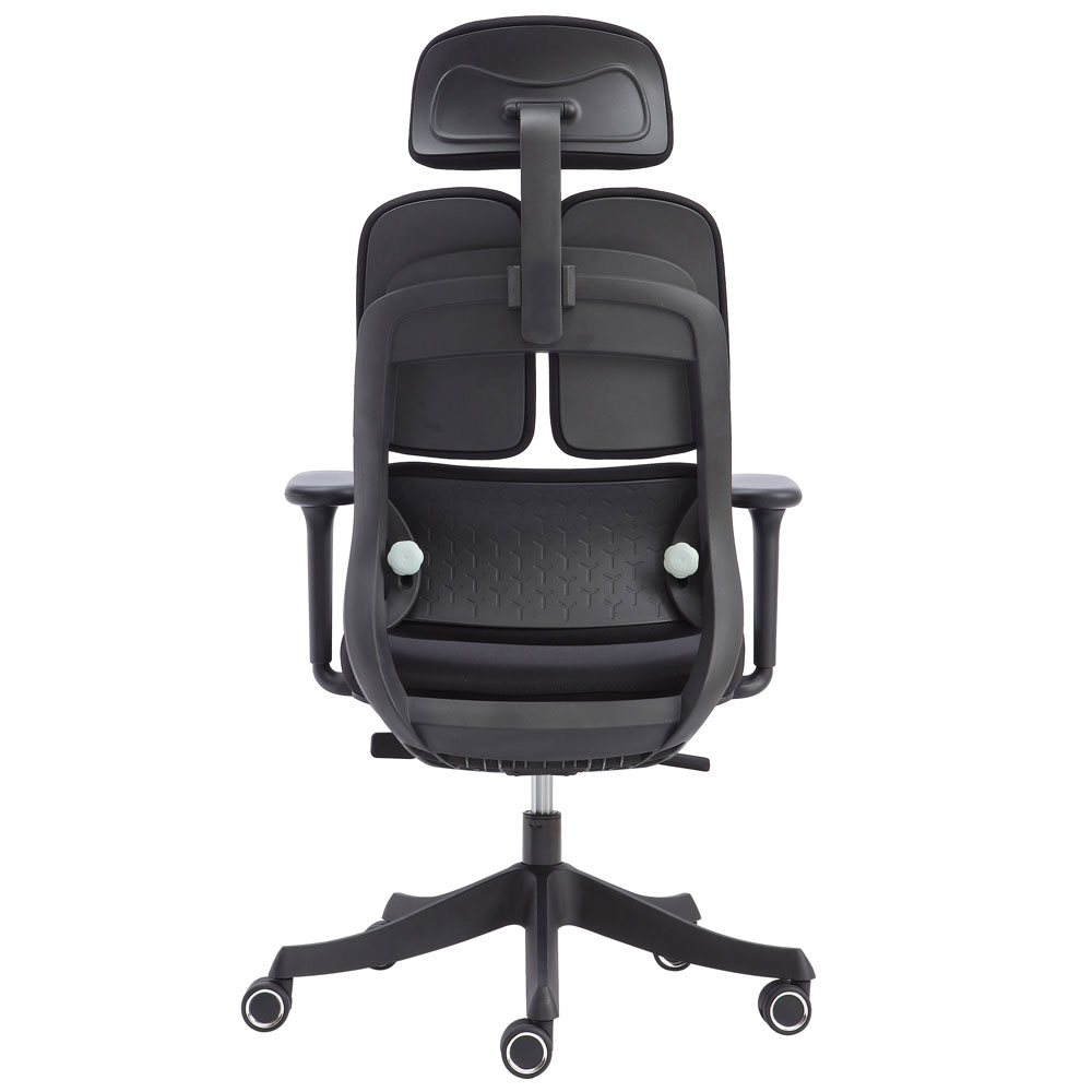 - Tựa lưng: Nhựa chịu lực, đúc ép khuôn cao tần, thiết kế chuẩn công thái học, có bộ phận tỳ đỡ cột sống điều chỉnh cao thấp.