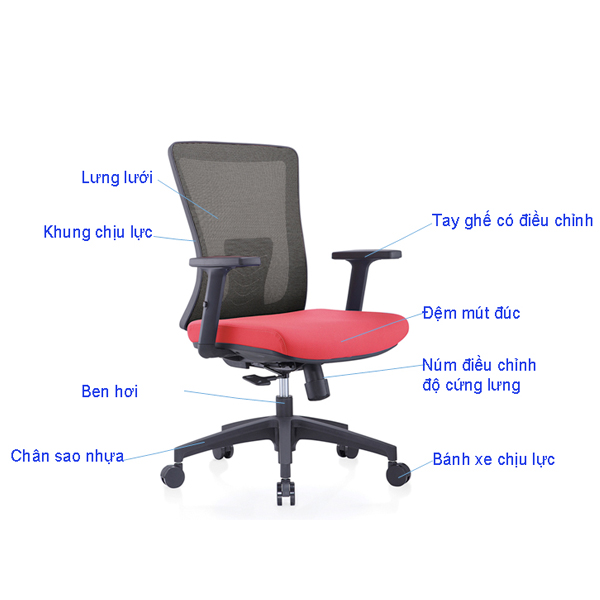 Chất Liệu: tựa lưới, đệm mút đúc, chân nhựa đúc