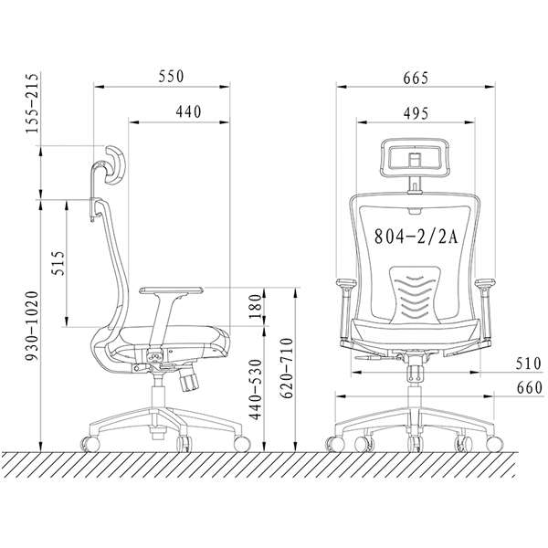 Kích Thước: W665 x D550 x H(940-1020) mm