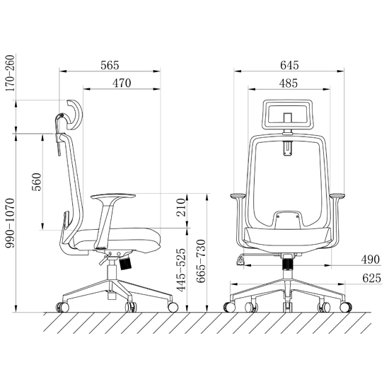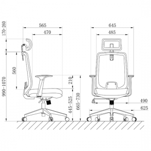 Kích Thước: W645 x D565 x H990-1070 mm